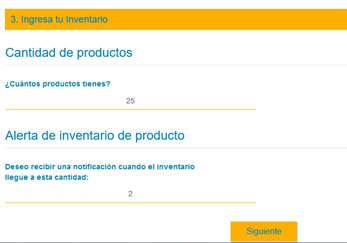 Detalles de inventarios: En este apartado tu colocas la cantidad de productos que posees para ofertar; colocas alerta de inventario para que la plataforma te informe cuando se te estén terminando los productos.